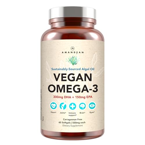 AMANDEAN Vegan Omega 3 Supplement. Premium Fish Oil Alternative! Algae DHA & EPA. Carrageenan Free Softgels. Algal Essential Fatty Acids. Plant Based Heart, Brain, Eye, Skin, Immune Support.