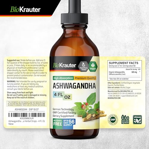 BIO KRAUTER Ashwagandha Root Tincture is a liquid extract supplement made from the Withania Somnifera herb, commonly known as Ashwagandha.