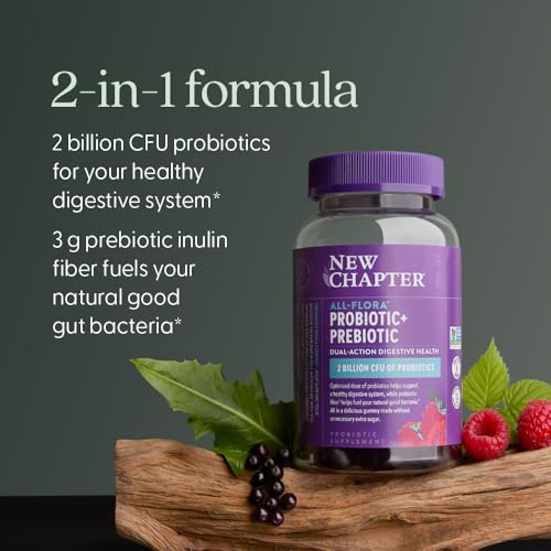 New Chapter Probiotic Gummies for Women and Men, All-Flora (1 Month Supply) – 55% Less Sugar+, Formulated for Holistic Gut Health Support with Probiotics + Prebiotic Fiber + 100% Vegan + Non-GMO