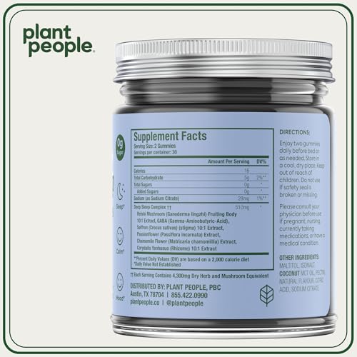 Plant People WonderSleep Mushroom Gummies Supplement for Sleep and Relaxation with Reishi Super Mushrooms, Wild Elderberry Flavor, No Sugar (60 Count)