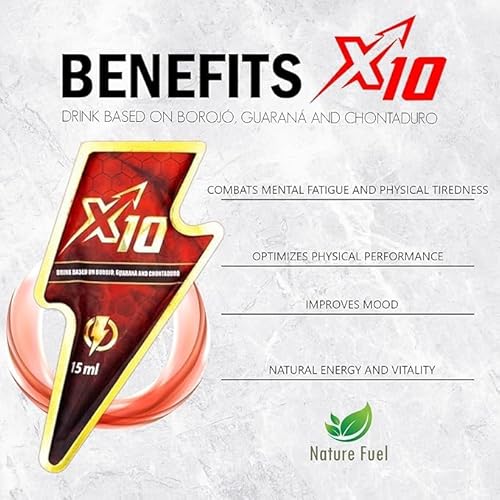 X10 Natural Supplement – Chontaduro, Guarana, and Borojó Blend | 15ml Sachets (7-Pack) | Plant-Based Energy Support for Vitality